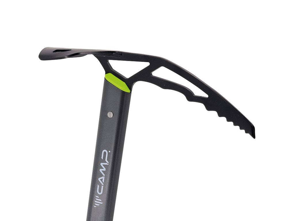 Hlava s lopatkou i spodní bodec jsou vyrobeny z chromované oceli, která poskytuje vysokou pevnost a jistý záběr v tvrdém sněhu i ledu. Ocelový hrot umožňuje efektivní brzdění pádu i bezpečné zasekávání při výstupu.
