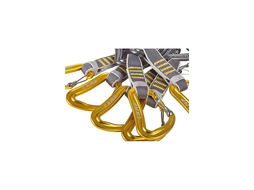 CAMP Dyon Express 18 cm (6 ks) je prémiová sada expresek určená pro náročné lezce, kteří vyžadují maximální plynulost, bezpečnost a nízkou hmotnost. Srdcem každé expresky jsou karabiny CAMP Dyon, které kombinují výhody drátového a klasického zámku díky unikátní technologii KeyWire.