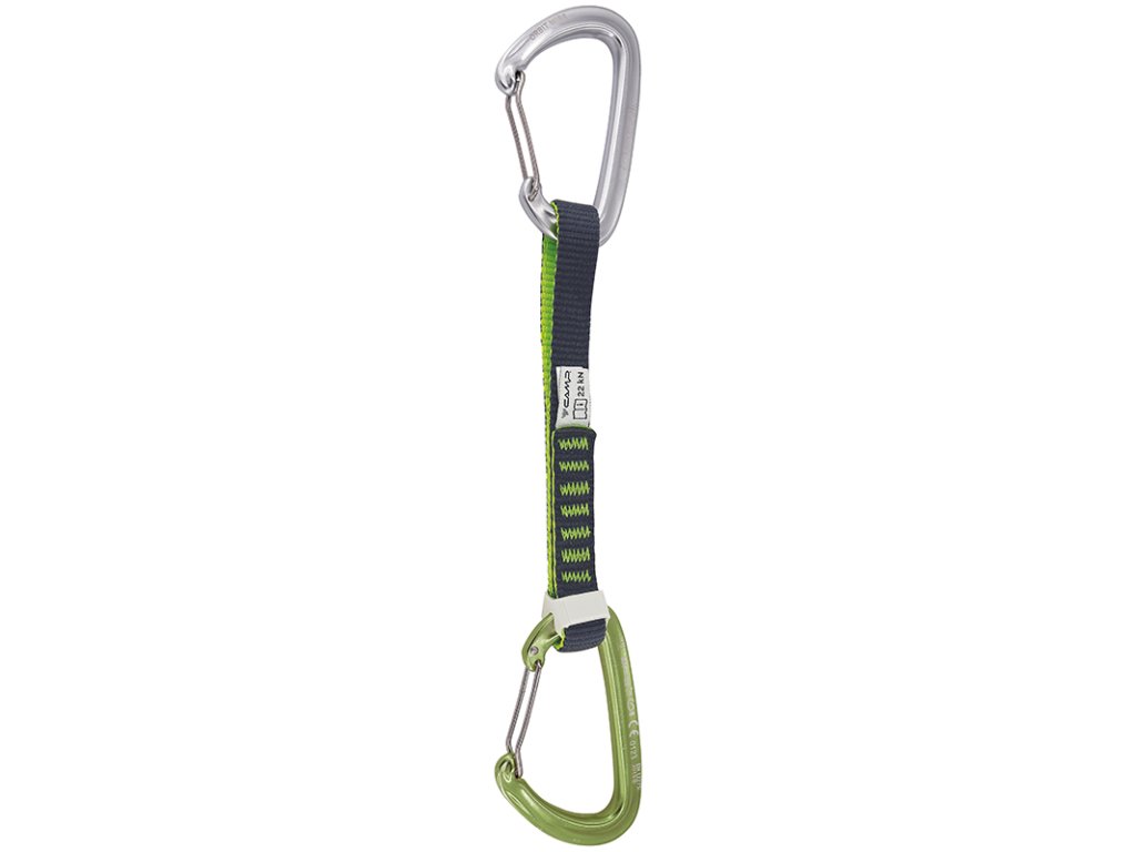 Karabiny spojuje 16mm nylonová smyce o délce 18 cm, která je robustní, dobře se drží a pomáhá omezit tah lana. Samozřejmostí je Karstop Evo, který zabraňuje nechtěnému přetáčení spodní karabiny a udržuje ji ve správné poloze při cvakání lana – rychleji a bezpečněji.