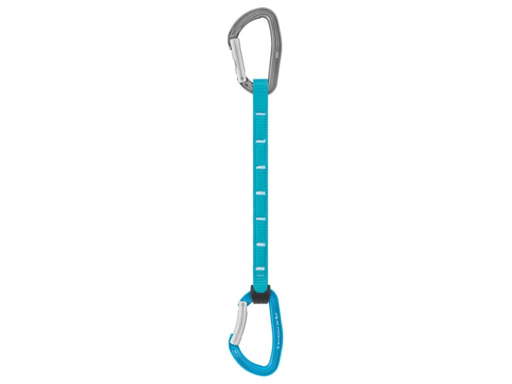 Horní karabina má rovnou západku pro bezpečné cvakání do nýtu, spodní karabina prohnutou západku pro snadné cvakání lana. Obě jsou vybaveny Keylock systémem, který zabraňuje zachytávání o plakety nebo smyčky.