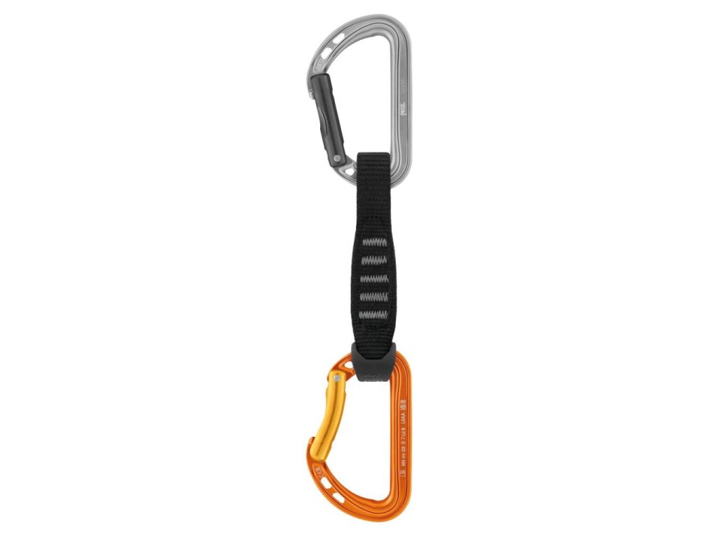 Je osazena dvěma karabinami Petzl Spirit – horní s rovnou západkou pro snadné zapínání do nýtu a spodní s prohnutou západkou pro rychlé a bezpečné cvakání lana. Obě karabiny využívají Keylock systém, který zamezuje zachytávání o plakety nebo smyčky.