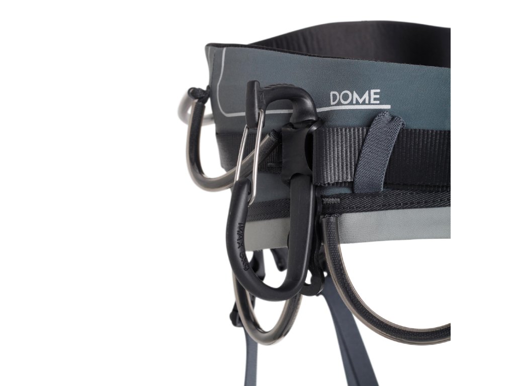 Nastavitelné nohavičky s Rock&Lock sponami zaručují dokonalé přizpůsobení i při použití s lyžemi či mačkami. Vyztužené navazovací body prodlužují životnost úvazku a zvyšují bezpečnost při intenzivním používání. Nechybí možnost uchycení držáku na kladivo, 7 poutek na materiál (každé s nosností 5 kg) a zadní tahací oko s nosností 10 kg. Pro dokonalou organizaci materiálu má Dome také 2 sloty pro přídavné karabiny PORTER.