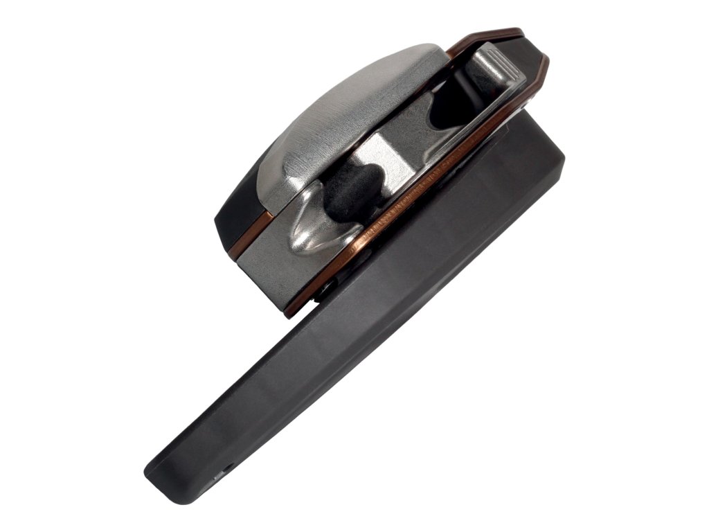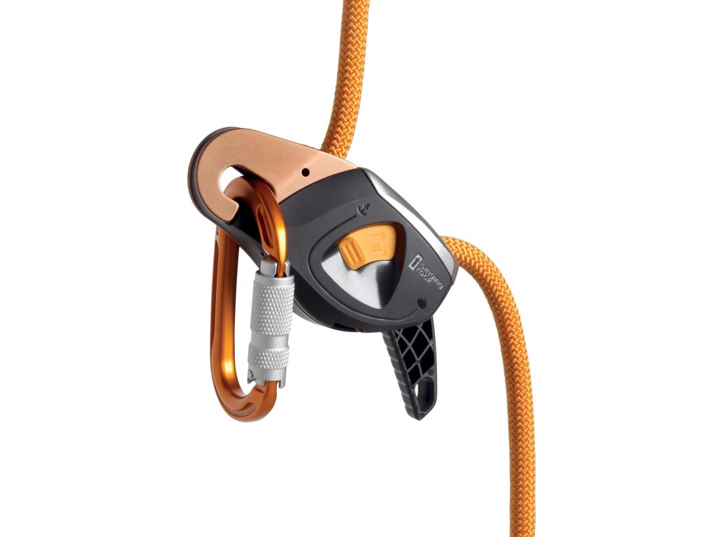 Patentované magnetické zajištění blokovacího srdce výrazně zjednodušuje zakládání lana. Při práci s nezatíženým lanem lze dočasně deaktivovat blokování přidržením srdce — bez nutnosti otáčet páku — což je ideální pro rychlý posun, dobírání nebo jištění prvolezce.