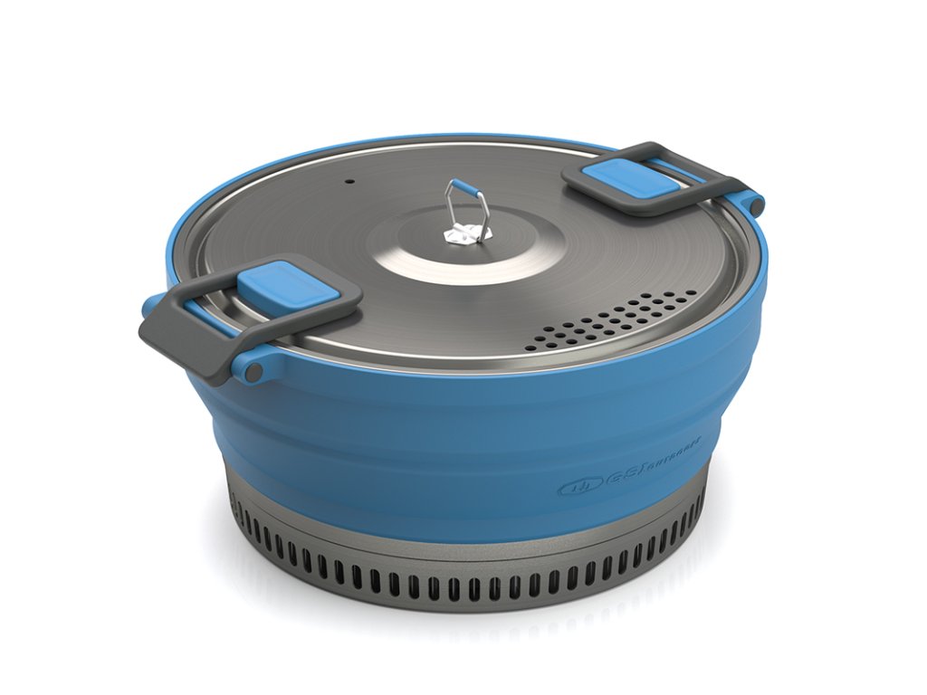 GSI Outdoors Escape HS Pot je inovativní skládací hrnec o objemu 2 litry, navržený pro maximální úsporu místa a efektivní vaření v přírodě.