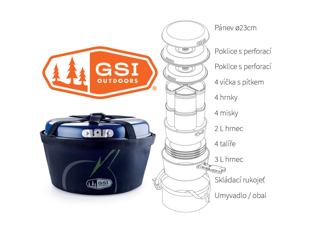 GSI Outdoors Bugaboo Ceramic Camper je největší sada z keramické řady Bugaboo, navržená pro plnohodnotné vaření i stolování pro čtyři osoby.