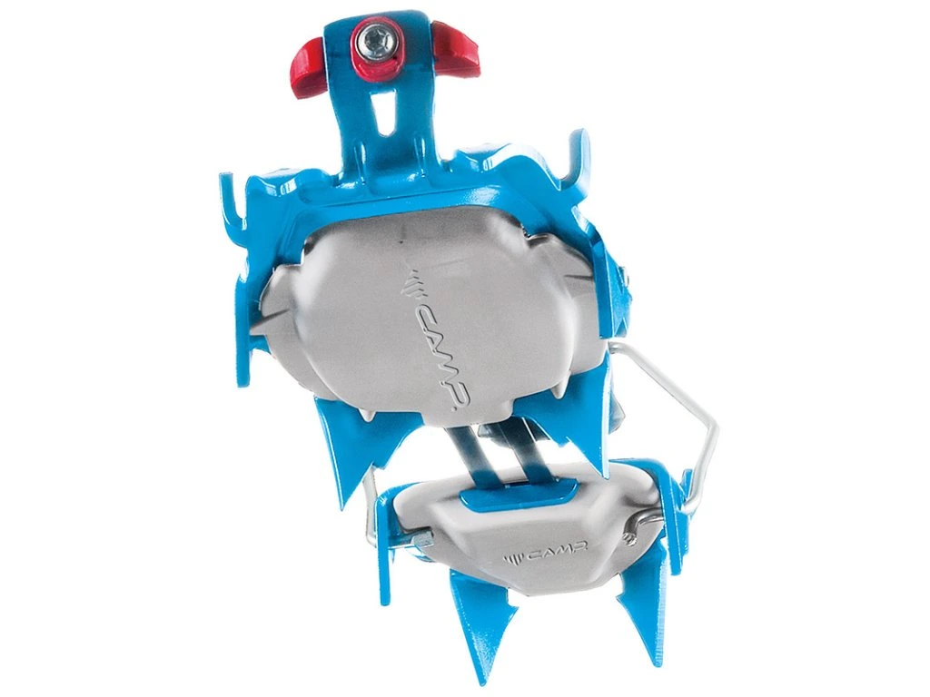 Přední upínání využívá inovativní T-Stop Toe System, který umožňuje otočení hrazdičky a přizpůsobení i nižším předním rantlům skialpových bot. Standardně jsou mačky dodávány jako Automatic. Pro boty bez přední hrazdičky lze dokoupit CAMP Skimo Semi-Automatic Toe Bail (2589).