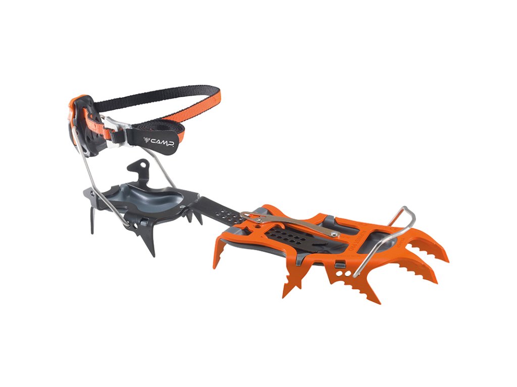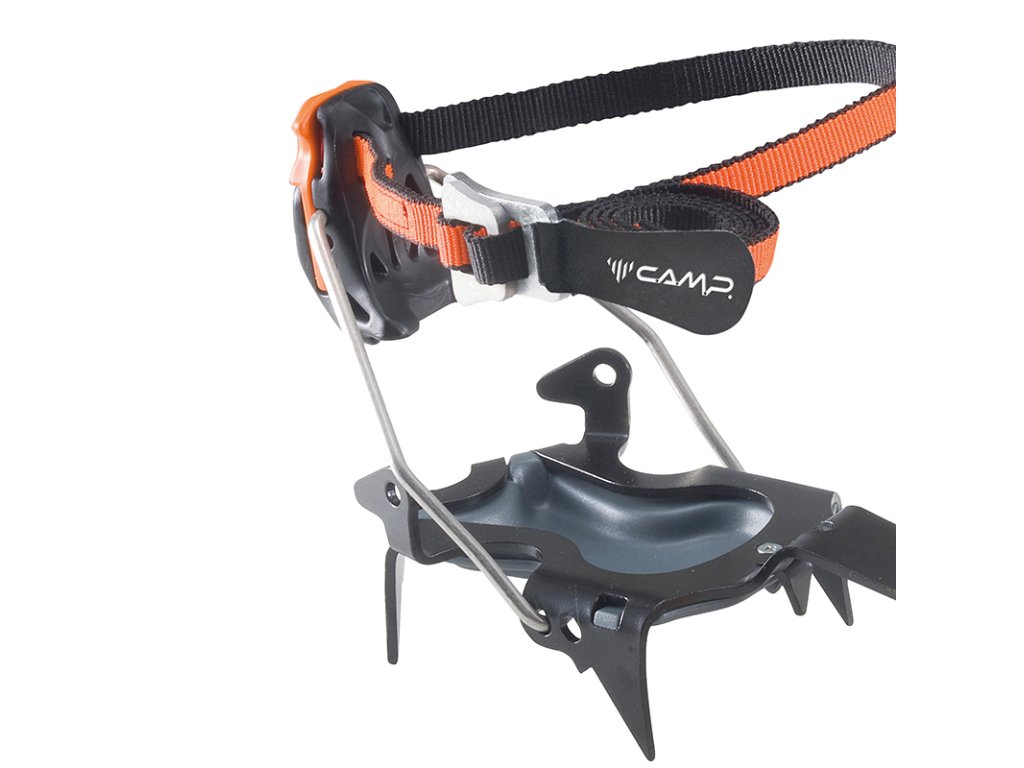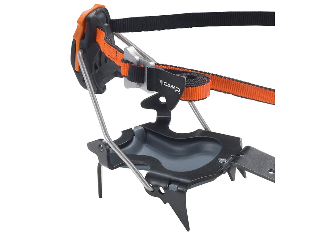 Asymetrická konstrukce kopíruje tvar moderních horolezeckých bot a umožňuje přesné a pevné usazení. Díky mikronastavitelnému spojovacímu baru lze délku jemně doladit podle konkrétní obuvi.