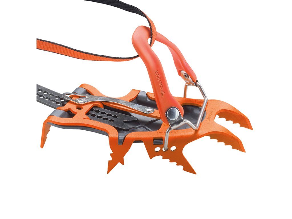 Patentovaná konstrukce patky kombinuje výhody vertikálního i horizontálního rámu, což zajišťuje ideální přenos síly při sekání do ledu i stabilitu při chůzi. Přední hroty se agresivně zakusují do ledu, zatímco robustní chromovaná ocel NiCrMo garantuje vysokou odolnost proti opotřebení i v technickém terénu.