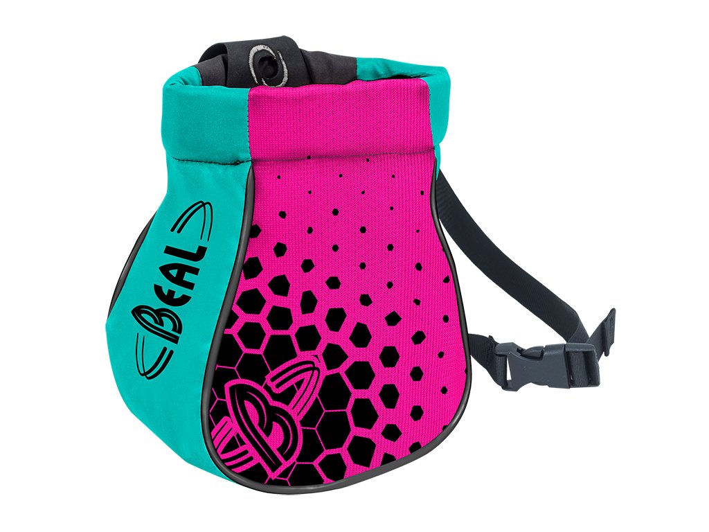 Uzavření je spolehlivé a zabraňuje nechtěnému sypání magnesia během lezení nebo při přenášení. Vnitřek je vyložen měkkým fleecem, který pomáhá rovnoměrně roztírat mágo po rukách. Součástí je také poutko na kartáček a nastavitelný popruh kolem pasu s plastovou sponou. Široký vstupní otvor poskytuje pohodlný přístup i pro větší ruce.