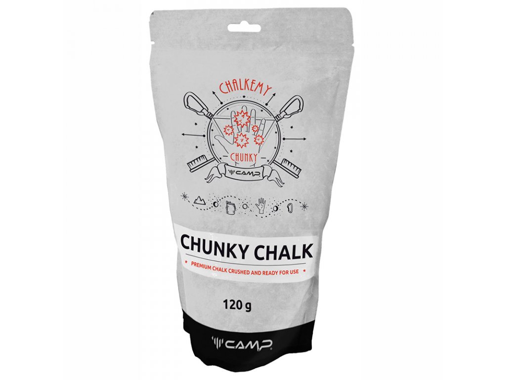 CAMP Chunky Chalk je prémiové drcené magnézium připravené k okamžitému použití. Díky optimální struktuře obsahuje větší i menší kousky, které se dobře nadrtí mezi prsty a rovnoměrně pokryjí dlaň.