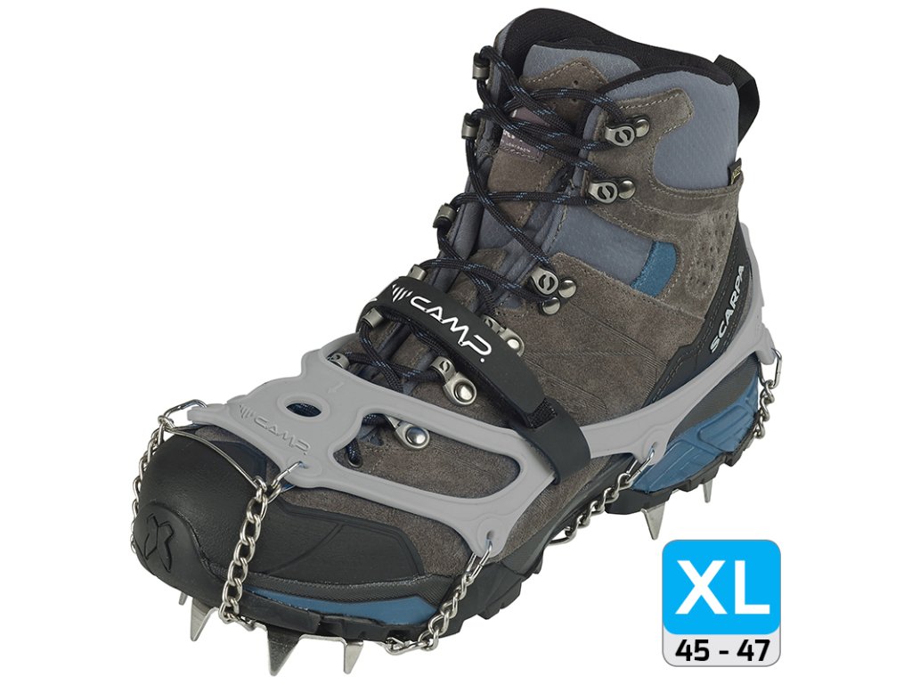 CAMP Ice Master EVO jsou turistické nesmeky navržené pro maximální jistotu na ledu a sněhu. Díky 13 hrotům z nerezové oceli o délce 15 mm poskytují výborný záběr i v prudším a zledovatělém terénu. Rovnoměrné rozmístění hrotů zajišťuje stabilitu při chůzi do kopce, z kopce i v traverzech.
