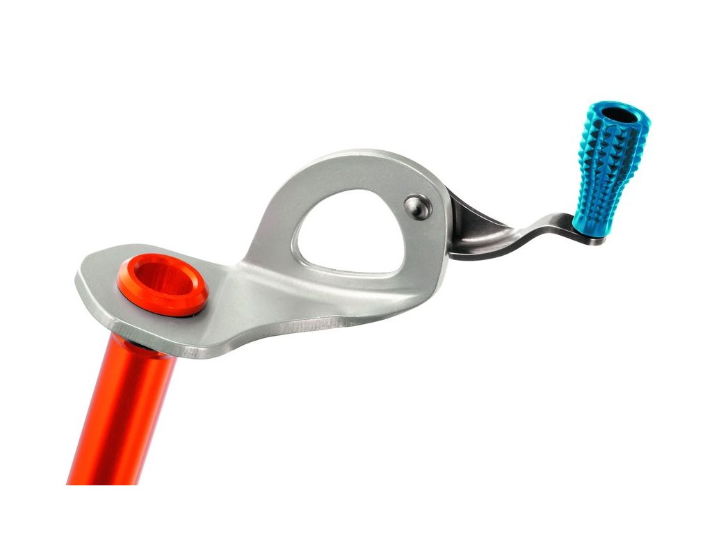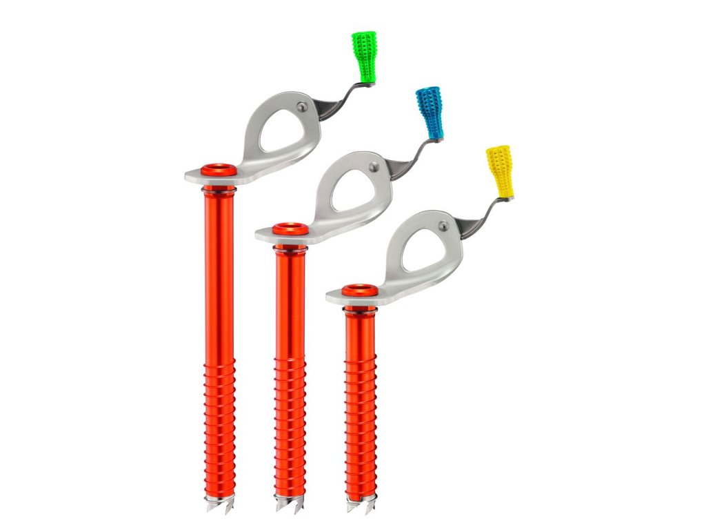 Sklopná integrovaná klička umožňuje rychlé a efektivní zavrtání, a to i v tvrdém ledu nebo při ztížených podmínkách. Barevné odlišení podle délky přispívá k lepší orientaci na úvazku a rychlejšímu výběru vhodné délky při zakládání jistících bodů.