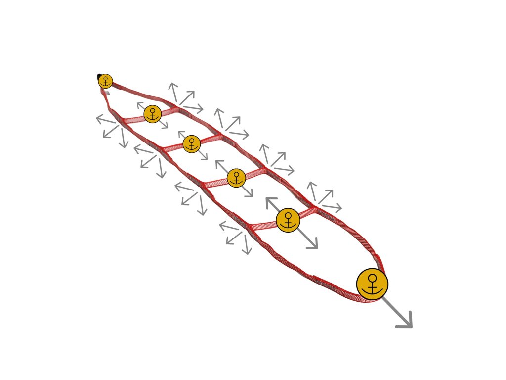 Každé jednotlivé oko je testováno na pevnost 22 kN, což znamená, že může být bezpečně zatíženo v jakémkoli směru. Tento prvek přináší velkou flexibilitu nejen při lezení, ale i v krizových situacích nebo při nouzovém budování jistících bodů.