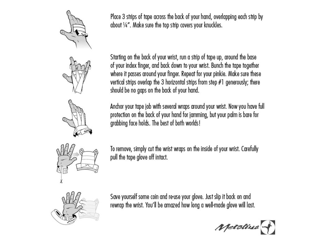 Součástí balení jsou ilustrované postupy krok za krokem, které ukazují, jak tejpovat prsty, dlaně či špičky prstů při typických lezeckých problémech – například při lezení spár nebo ochraně roztržených konečků. Výrobce navíc nabízí videonávody, díky nimž je správné tejpování ještě jednodušší.