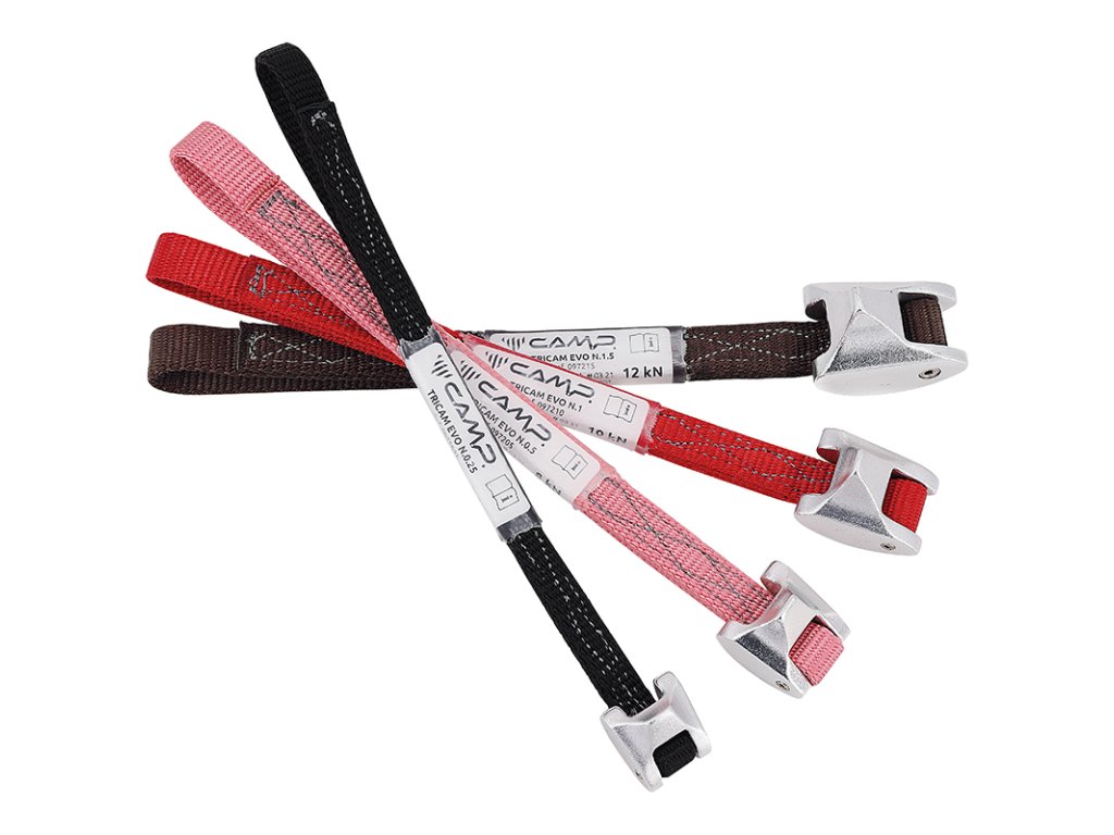 Vylepšené vklíněnce Camp Tricam EVO, které lze použít jako aktivní a pasivní jištění. U pasivního jištění lze vklíněnec založit také na šířku. Tyto vklíněnce lze často umístnit i tam, kde všechny ostatní vklíněnce nebo friendy selhaly. Lze je použít jak v horizontálních spárách, mělkých vertikálních spárách a jamkách. Také je možné Tricam použít i v ledových spárách. Snadná orientace ve velikostech podle barevné smyčky.